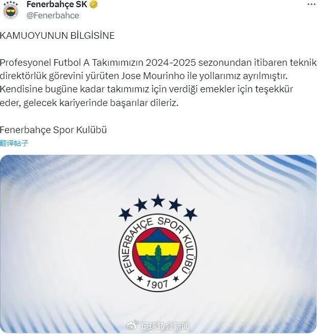 费内巴切本周刚在欧冠预选赛中被本菲卡淘汰,无缘正赛,穆里尼奥在去年夏天上任,上赛季他率队拿到了联赛第二。