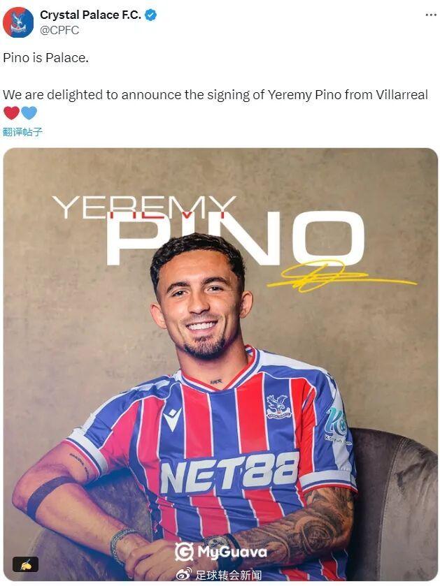 官方:水晶宫宣布从比利亚雷亚尔签下了耶雷米-皮诺,这名22岁的边锋签下了一份5年合同。